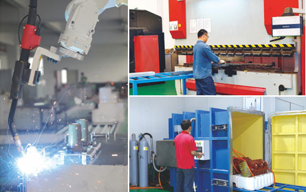 生產(chǎn)設(shè)備:德國、芬蘭和日本進(jìn)口的數(shù)控加工設(shè)備、全自動(dòng)靜電噴涂生產(chǎn)線、鈑金加工設(shè)備、機(jī)械加工中心